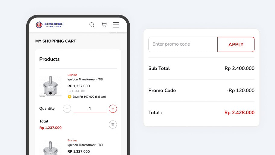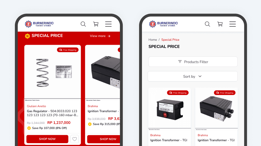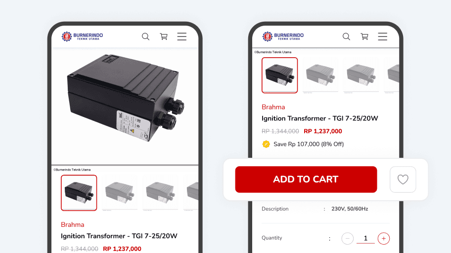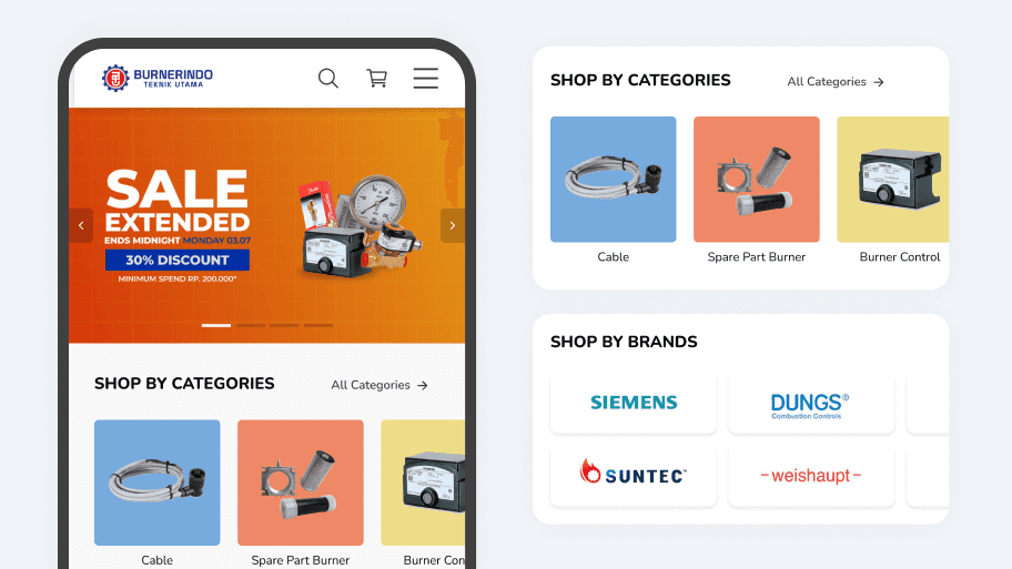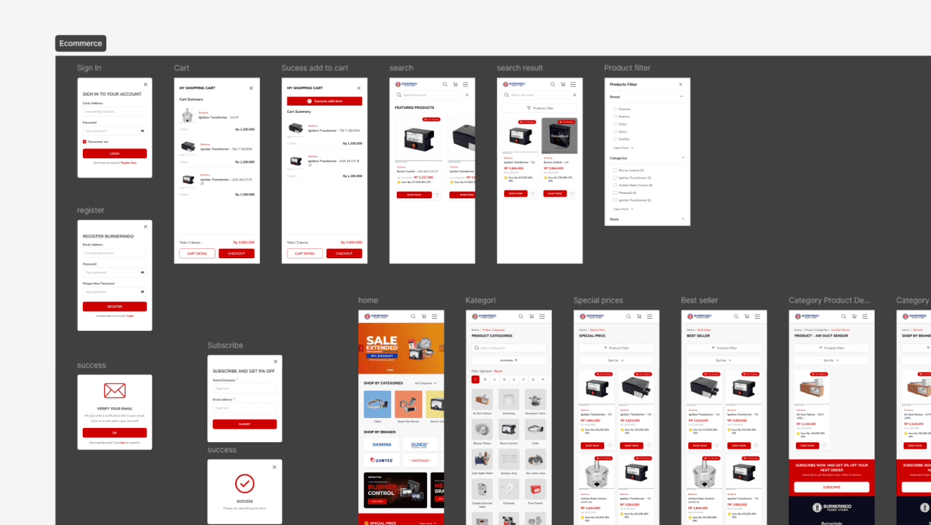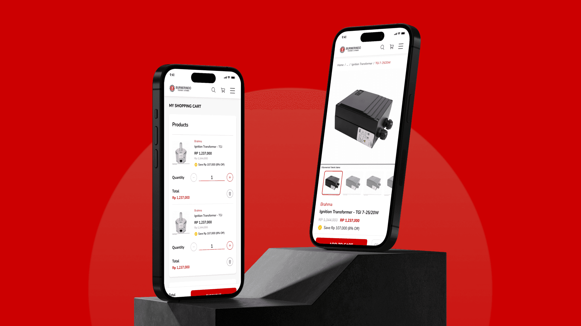 Burnindo is a B2B e-commerce platform owned by PT. Burnerindo Teknik Utama, specializing in the supply of spare parts for burners and steam boilers. This was my internship project — and what made it unique was that this was the very first website Burnindo ever had, meaning every design decision I made was building their digital presence entirely from scratch.