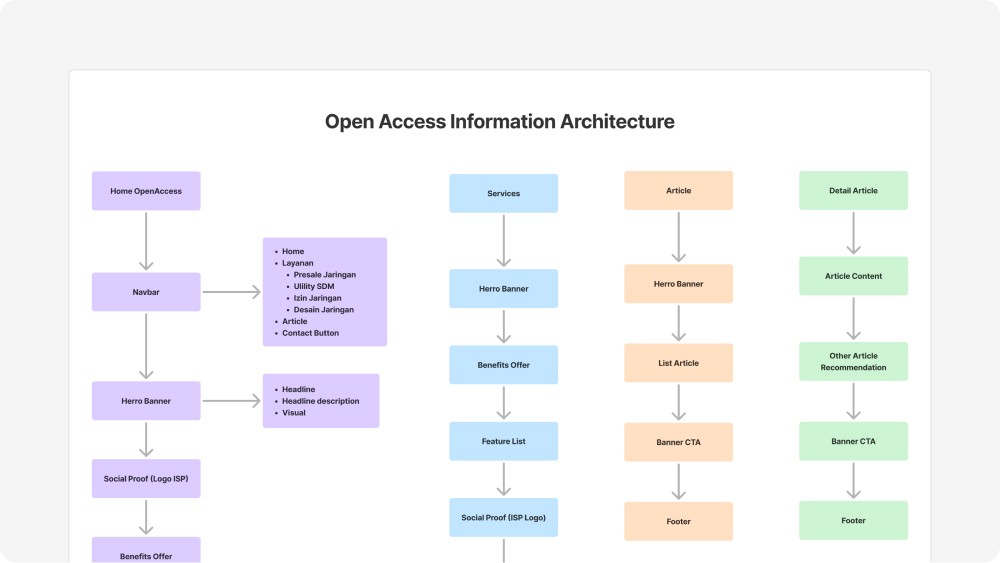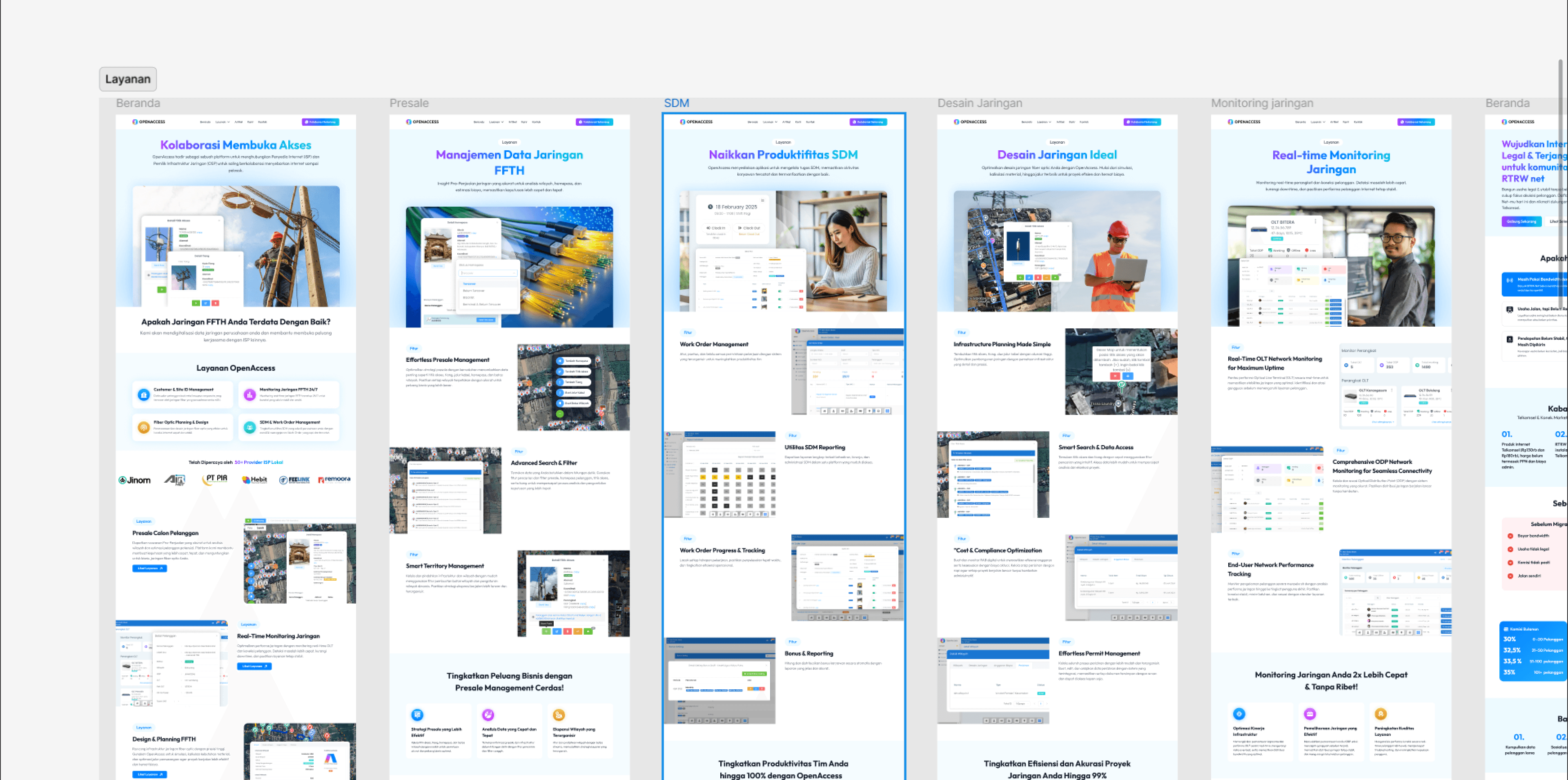 My first step was to deeply understand OpenAccess as a business — how ISPs and OSPs interact with the platform, which features deliver the most value to each segment, and how current users describe the platform's benefits in their own words. I then conducted a full audit of the existing pages to identify specific communication gaps: where the language was too technical, where the value proposition was unclear, and where decision-makers were likely losing interest.