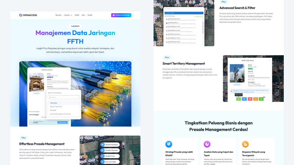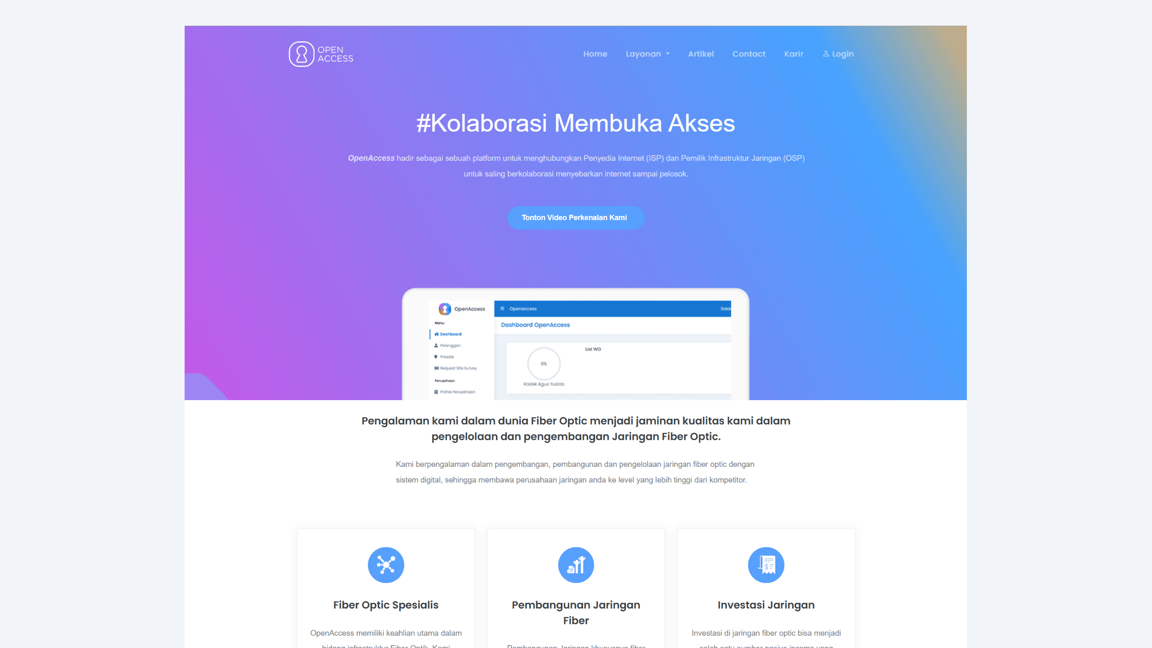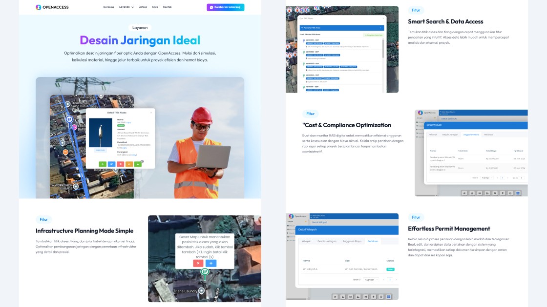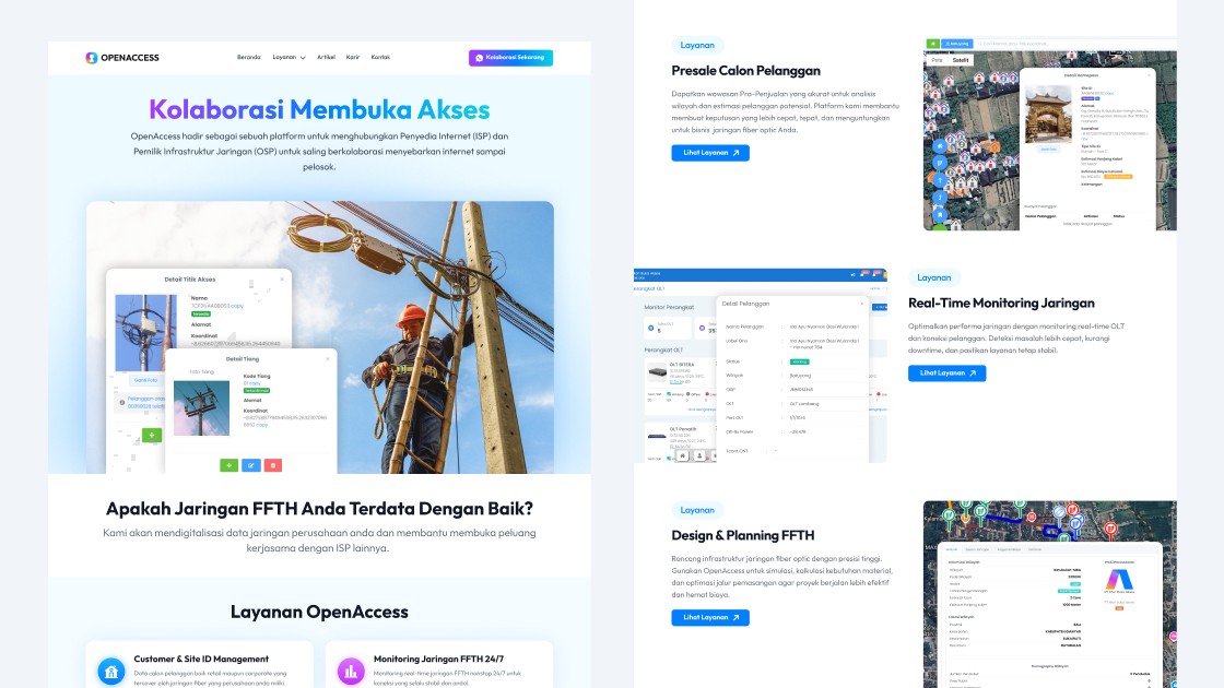 OpenAccess is a B2B SaaS that bridges the gap between internet service providers and network infrastructure owners, enabling collaborative expansion of fiber optic internet access across Indonesia. The platform serves two distinct user segments simultaneously — ISPs who need access to existing infrastructure, and OSPs who own and want to monetize that infrastructure.